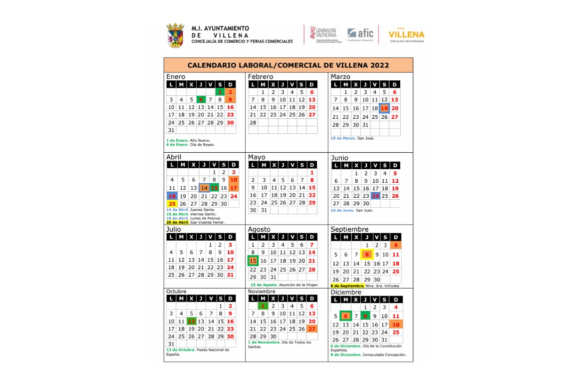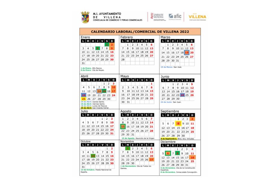 La Concejalía de Comercio de Villena ha publicado hoy los días de apertura comercial disponibles a lo largo del año según el acuerdo establecido en el Consejo Local de Comercio, y que afecta ya a los días de