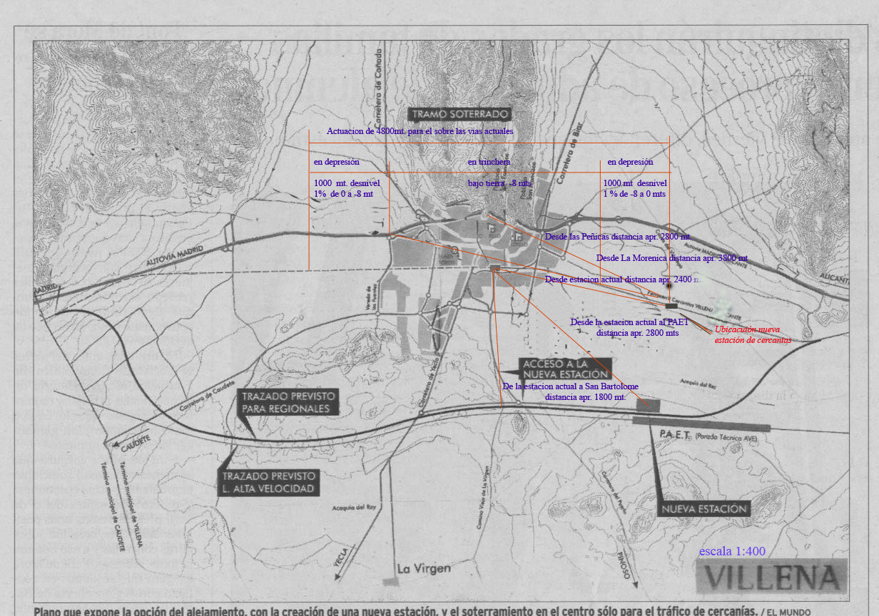 Si el trazado del AVE se lo encontró así, que mejor opción que trasladar todas la vías a su paso por Villena a dicho trazado, ya que desde el primer momento se conocía por nuestros gobernantes que el soterramiento integral no podía llevarse a cabo.