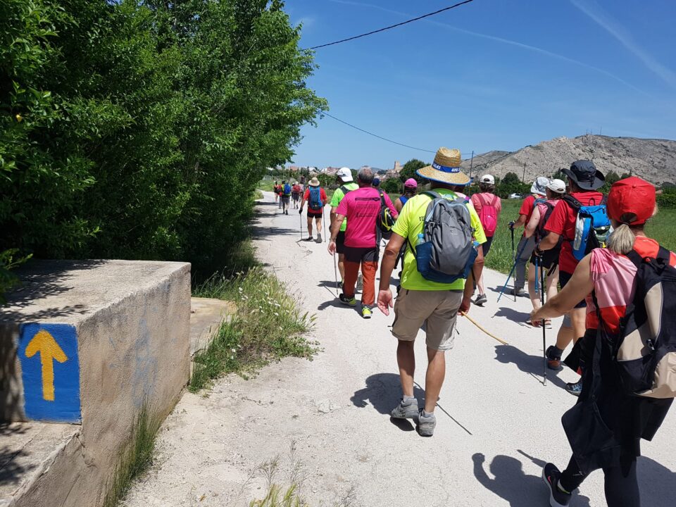 Un total de 22,25 Km. con un desnivel de 124 metros. Al principio la etapa trascurre por sendas a la orilla del rio Vinalopó entre zonas de campos y chalets, siendo un agradable paseo entre arboles hasta llegar a Sax, donde hicimos una parada en el Mesón Cervantes para sellar las credenciales. Salimos de la población y avanzamos por una pista que nos llevó en dirección a la Colonia de Santa Eulalia, lugar elegido para realizar la parada del almuerzo y reponer fuerzas. Desde aquí, nos dirigimos hacia Villena, pasamos junto a la acequia del Rey y entramos a la ciudad por la calle San Benito, teniendo como punto de referencia el castillo de la Atalaya. Una vez en la ciudad visitamos nuestro albergue de peregrinos de la Hermanas Trinitarias donde los peregrinos sellaron sus credenciales y adquirieron productos realizados por las hermanas. Mas tarde, nos dirigimos a la iglesia de Santiago del siglo XV y estilo gótico-renacentista valenciano, donde nuevamente los peregrinos pudieron sellar la credencial, dejando constancia de su paso por esta etapa del camino.