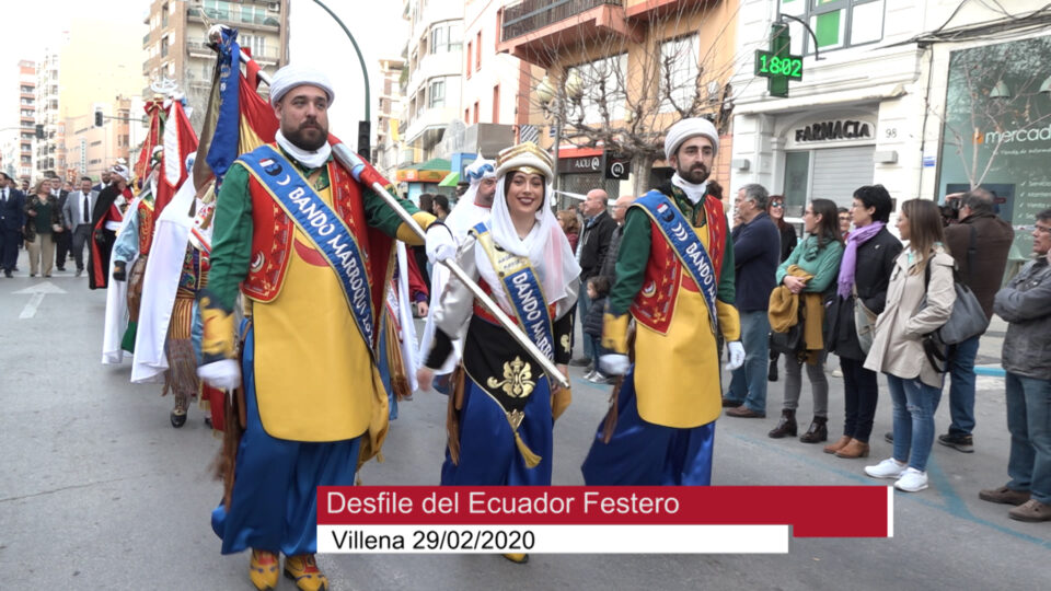 A las 17.30 horas dará comienzo el desfile del Ecuador Festero donde además de los cargos festeros se incluirá un bloque de banderas con todas aquellas que han representado a sus comparsas desde 1970 hasta la actualidad. A continuación ruedo de banderas y un vino de honor ambientado con música de charanga en directo.