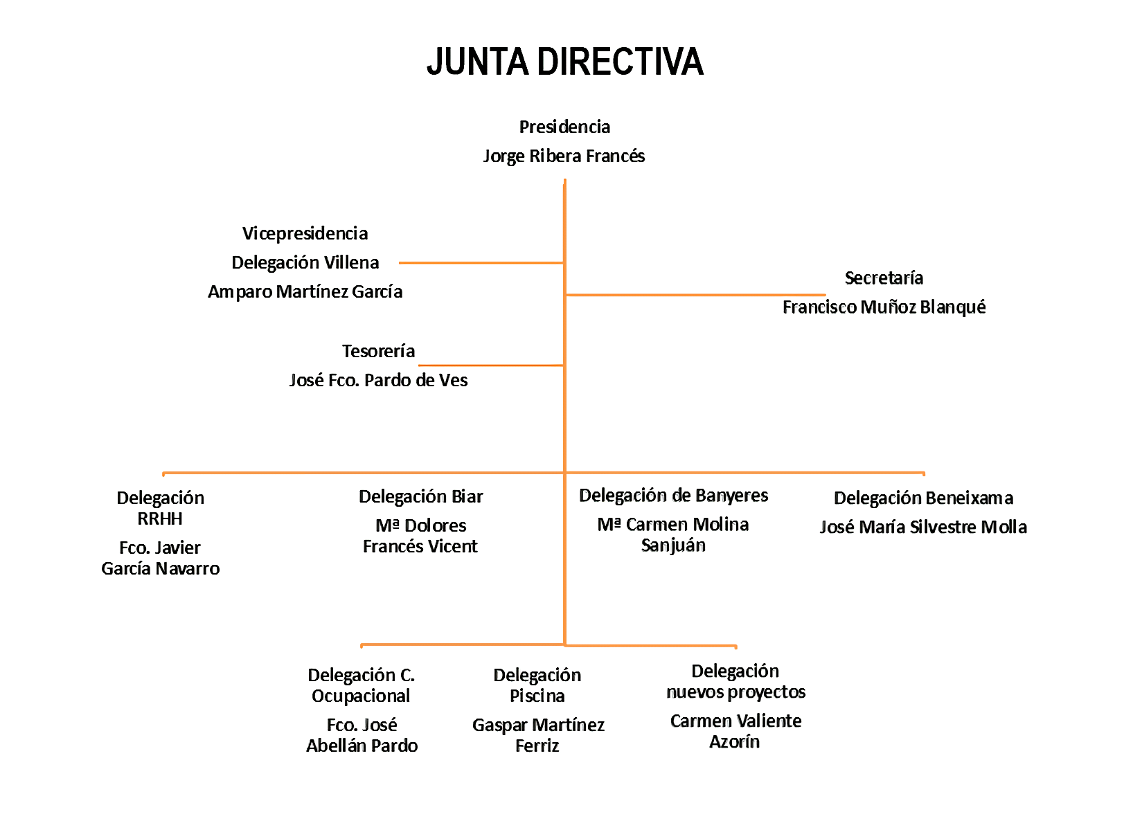 Una junta directiva en la que cabe destacar los cargos que ostentarán Jorge Ribera como presidente, Amparo Martínez como Vicepresidenta y Francisco Muñoz al cargo de la Secretaría. El resto de cargos pueden consultarse en el organigrama que adjuntamos en esta nota de prensa.