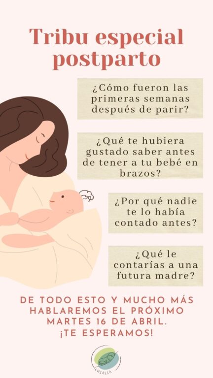 En primer lugar, el martes 16 de abril a las 17:30h en la Sala de Expresión Corporal de la Casa de la Cultura se llevará a cabo una tribu especial sobre postparto. Las tribus son espacios de encuentro para mujeres embarazadas y madres en los que se comparten vivencias relacionadas con la maternidad y la crianza en un entorno de escucha, libre de juicios, generándose así una red de apoyo madre a madre. Se trata de reuniones quincenales abiertas a toda mujer que quiera participar y pensadas como un espacio al que acudir con niños y niñas, pues existe material de juego y un ambiente respetuoso con sus necesidades. Aunque habitualmente no hay temas cerrados en estos encuentros, la tribu del próximo día 16 estará dedicada a hablar del postparto inmediato, de qué les sucede a las madres durante las semanas siguientes a dar a luz. El objetivo es hablar de cómo se vivieron esas semanas, de las expectativas cumplidas e incumplidas, de las situaciones inesperadas, las dificultades, los descubrimientos, los buenos momentos, los malos, los cambios, lo que hubiera sido útil saber con anterioridad,… Se trata de una sesión especialmente interesante para mujeres embarazadas, pero también para todas aquellas que ya hayan sido madres y quieren escuchar otras experiencias o compartir la suya propia.