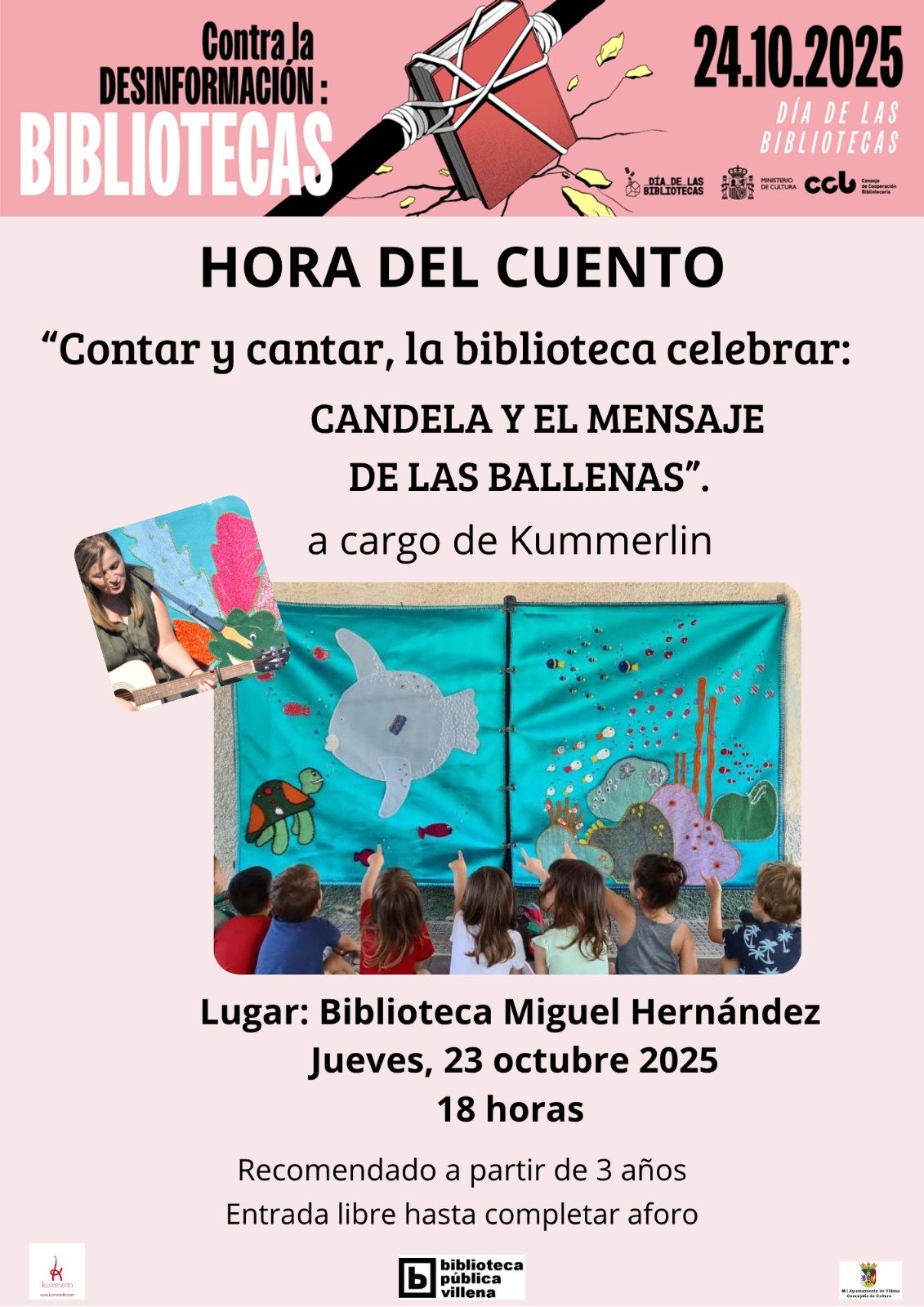 El jueves 23 de octubre tendrá lugar una actividad infantil y familiar en la Biblioteca Miguel Hernández, a las 18:00 horas, bajo el título “Contar y cantar, la biblioteca celebrar”, que combinará música, cuentos y animación lectora.