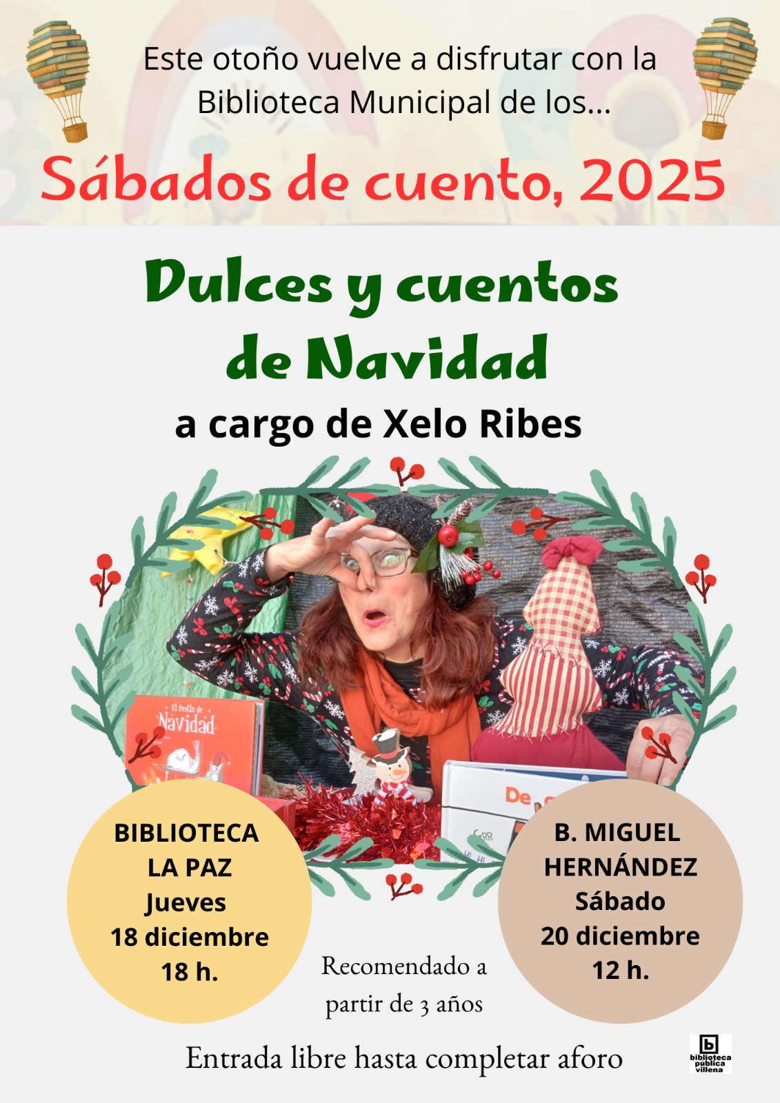 El cierre del ciclo llegará con ‘Dulces y cuentos de Navidad’, el jueves 18 de diciembre en la Biblioteca La Paz y el sábado 20 en la Miguel Hernández, a cargo de la narradora Xelo Ribes.