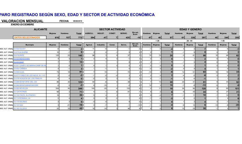 Por municipios el paro ha aumentado en la gran mayoría de las poblaciones destacando el municipio de Novelda con 249 personas desempleadas más respecto del mes anterior, situándose la tasa de desempleo en 2.435, lo mismo ha ocurrido en el municipio de Aspe donde la tasa del paro ha subido en 145 persona la tasa de desempleo sigue siendo elevada de 2.169 y en el municipio de Monforte del Cid donde el desempleo ha aumentado en 123 personas con una tasa de 3.285. Estos datos siguen demostrando que el paro es muy estacional en nuestra comarca.