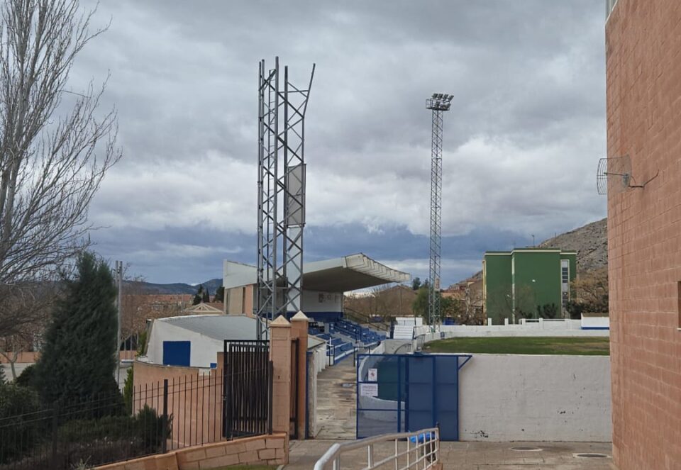 El pasado lunes, una torre de iluminación del campo de fútbol se precipitó sobre la cubierta del pabellón como consecuencia del viento, además de otros desperfectos en otras áreas y zonas de juego del polideportivo municipal.
