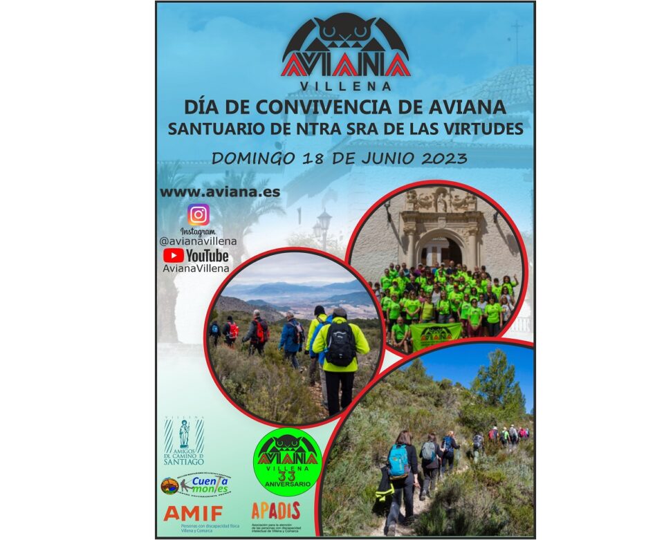 Con motivo del 33 aniversario de la Asociación Villenense de Amigos de la Naturaleza (AVIANA), el próximo 18 de junio de 2023, dentro del programa de actividades que tenemos establecido para este año, vamos a celebrar un día de convivencia en el Santuario de Ntra. Sra. de las Virtudes, aprovechando al mismo tiempo que es Año Jubilar.
