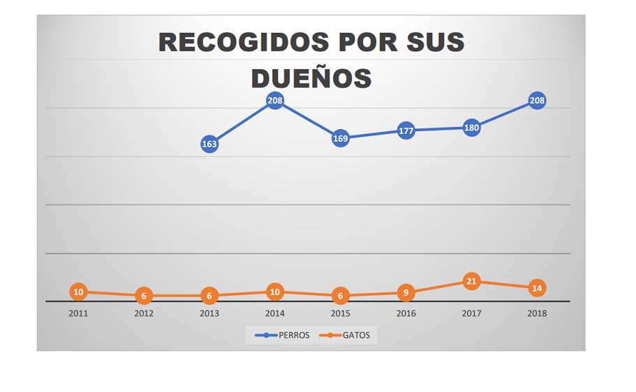 De todos estos animales, han sido RECOGIDOS por sus tutores humanos legales 208 perros y solamente 14 gatos. Destacamos aquí que el número de perros que han vuelto a sus hogares ha aumentado gracias a la identificación con microchip, mientras que los gatos recogidos ha disminuido justo por la falta de identificación de los felinos.