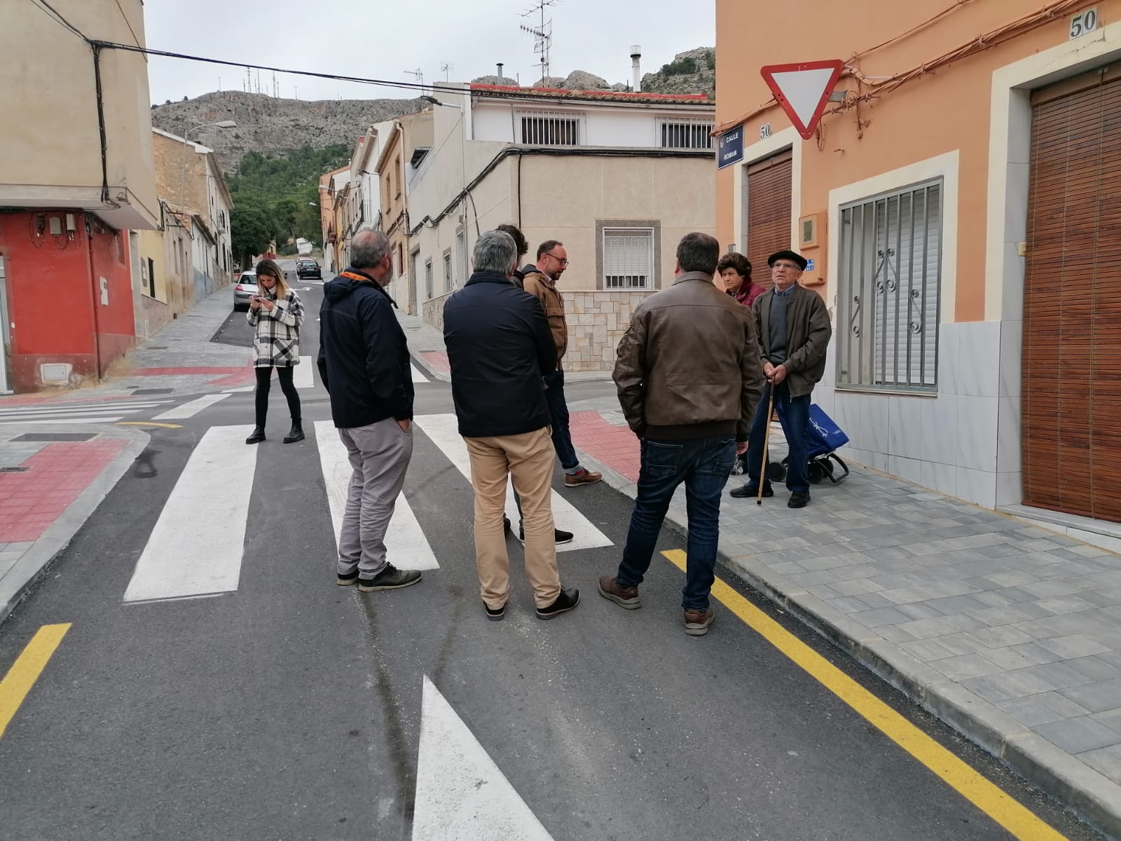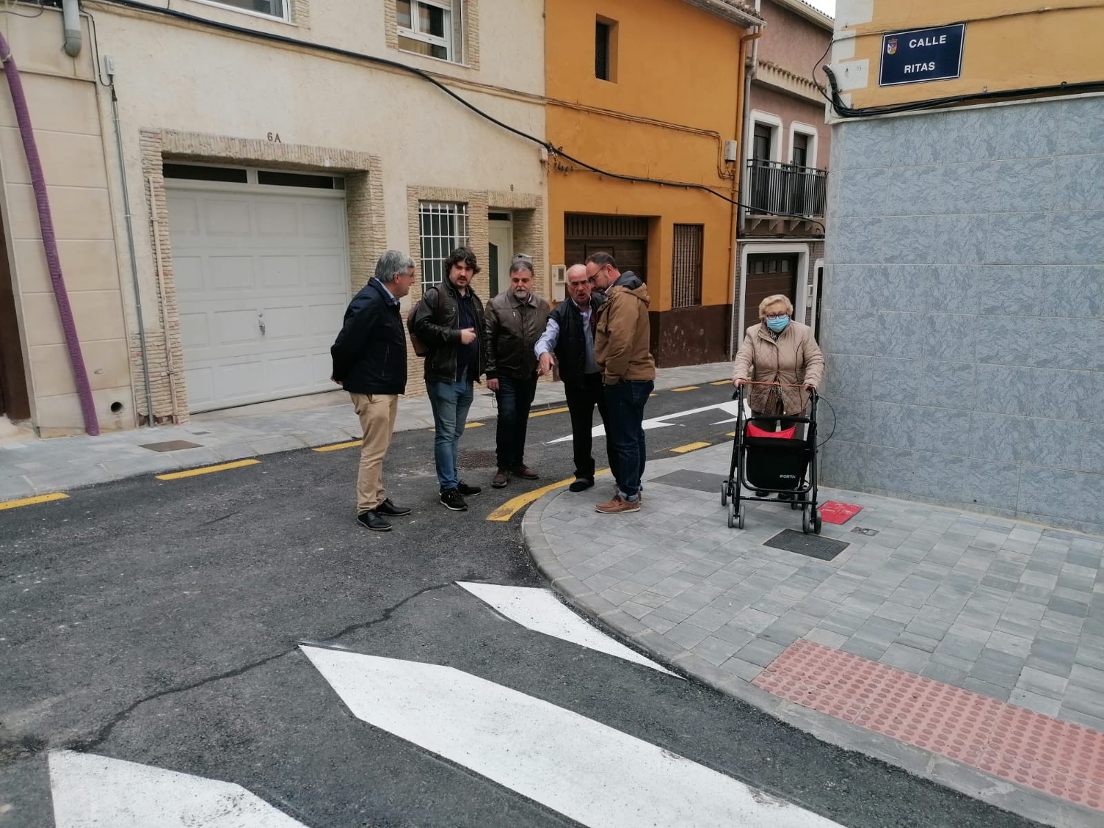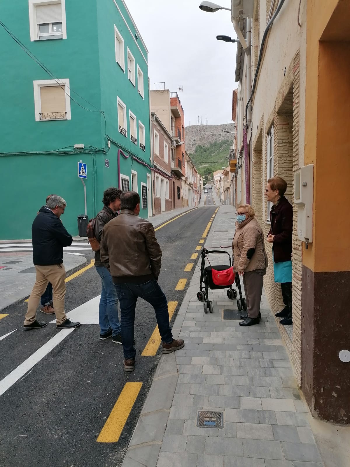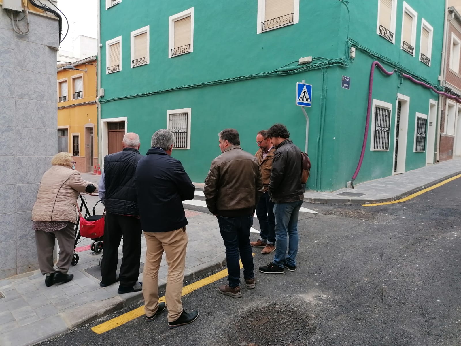 Villena, 18 de noviembre de 2022.- El alcalde de Villena, Fulgencio Cerdán, y acompañado de miembros de la Corporación municipal, han visitado las calles José María Soler y Román para comprobar el acabado de las obras de mejora de la infraestructura de canalización de agua soterrada y de la reurbanización en superficie de estas dos vías, que ya están abiertas al tráfico de manera definitiva. En la visita también pudieron apreciar el efecto positivo de la actuación en las calles Cid, Ritas y en Pintor Joaquín Sorolla, que se han desarrollado con la partida de mejoras del propio proyecto.
