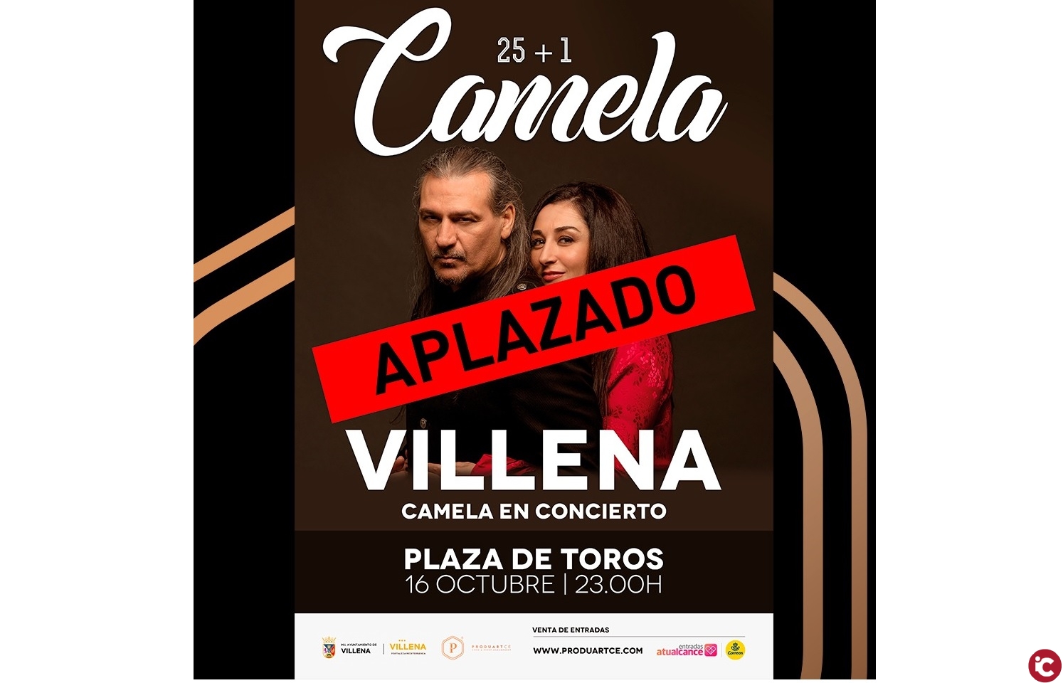 El concierto de Camela estaba previsto el próximo 16 de octubre en la Plaza de Toros de Villena, y ahora se ha propuesto para el 15 de mayo del próximo año en el mismo espacio. El edil de Comunicación, Javier Martínez, señaló que hemos acordado esta medida pensando en la salud de todos, tratando de asegurar las mejores condiciones para que Villena siga siendo lugar de cultura, de música, de conciertos y de grandes eventos con plena garantía y seguridad. Esta decisión, en opinión de Martínez, es positiva por todos, una postura acordada con la empresa responsable del evento, Produartce, que siempre ha mostrado la mejor disposición y colaboración.