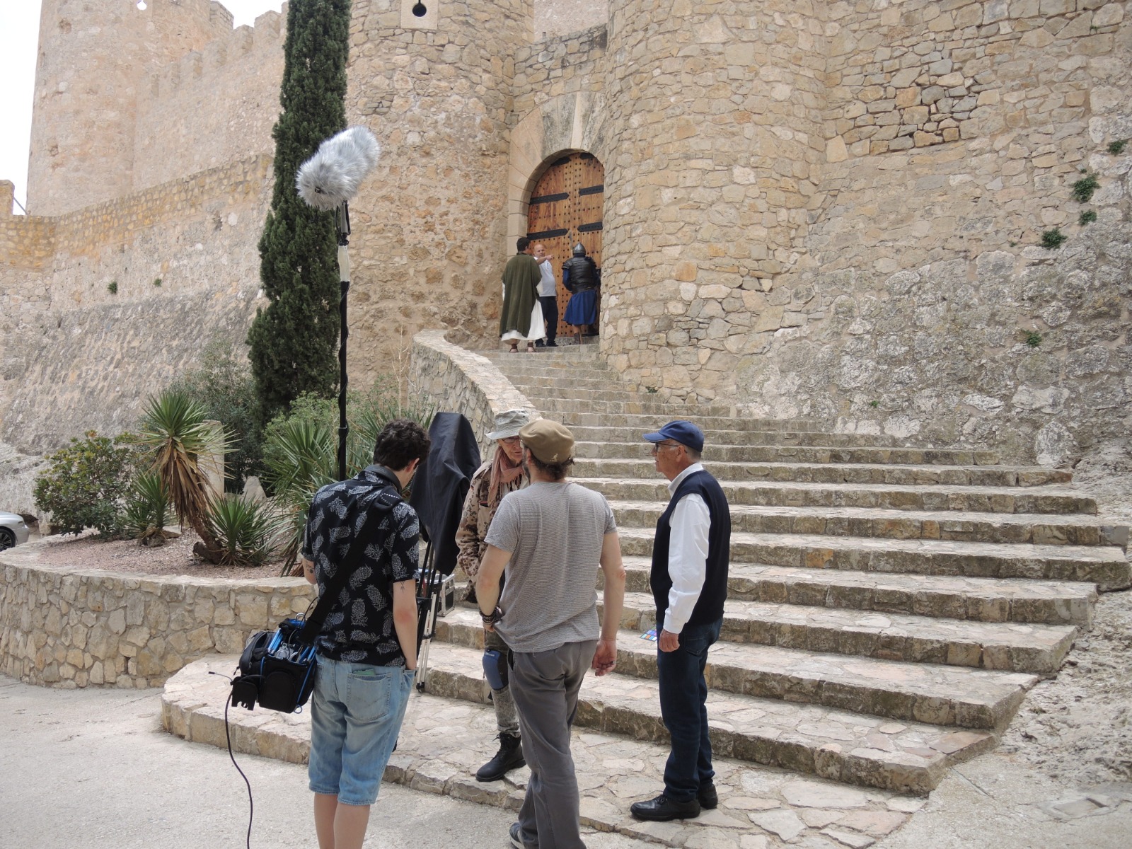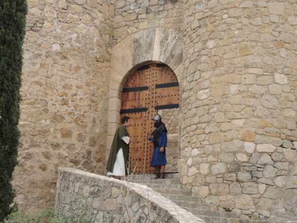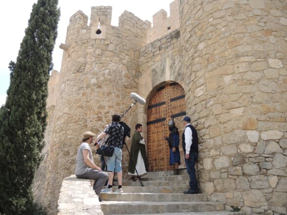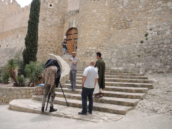 Villena, 19 de mayo.- El Castillo de la Atalaya de Villena ha sido escenario del rodaje de la nueva versión de la película ‘Rey de Reyes’, uno de los clásicos del cine de los años 60 que ha aprovechado exteriores de la fortaleza y algunos interiores de castillo para escenas del largometraje. Durante el pasado jueves, un equipo de la productora estadounidense Coastal Films se desplazó a Villena con el personal técnico y cinco actores para la toma de diferentes escenas.