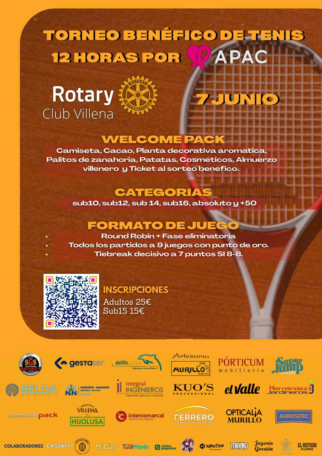 El evento ofrece la posibilidad de participar en tres modalidades deportivas: un torneo de tenis de 12 horas, un torneo de pádel y una carrera (o paseo para quienes lo prefieran) de 5 kilómetros, que partirá desde Villena ciudad hasta la academia. La organización espera una alta participación en todas las actividades, fomentando la vida activa y el compromiso solidario.