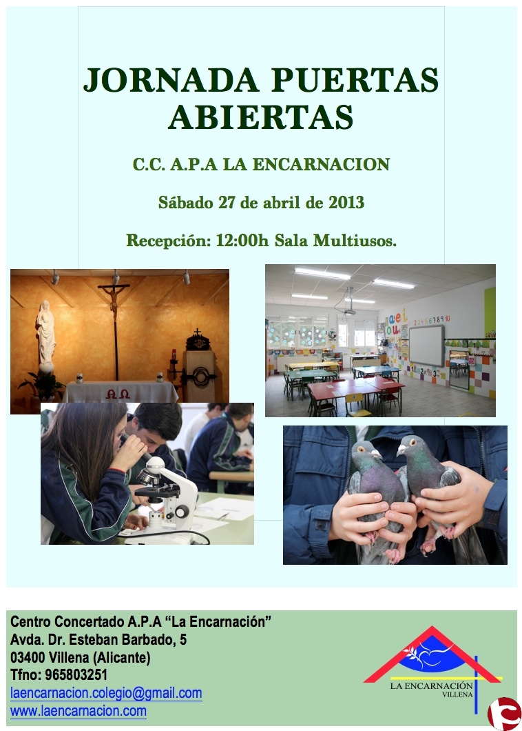 El Colegio Concertado APA LA ENCARNACION, el próximo día 27 de Abril 2013, va a realizar por primera vez, la I Jornada de Puertas abiertas.