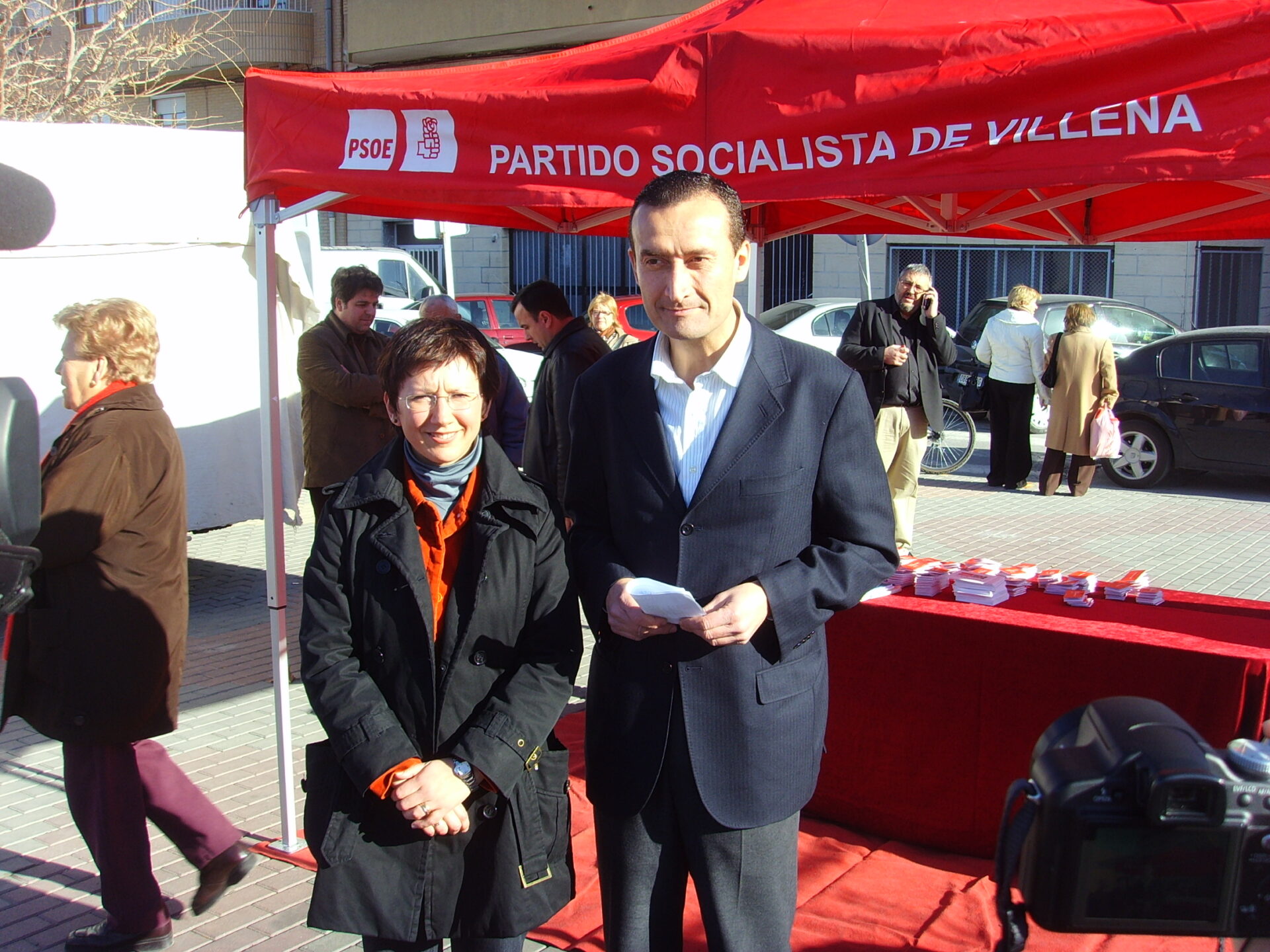 Sigue la precampaña del PSOE con «Z» de Zapatero. Hoy con motivo del mecadillo, la candidata al congreso en Villena, Vicenta Tortosa y el diputado Nacional, Carlos González, repartieron propaganda de su partido.