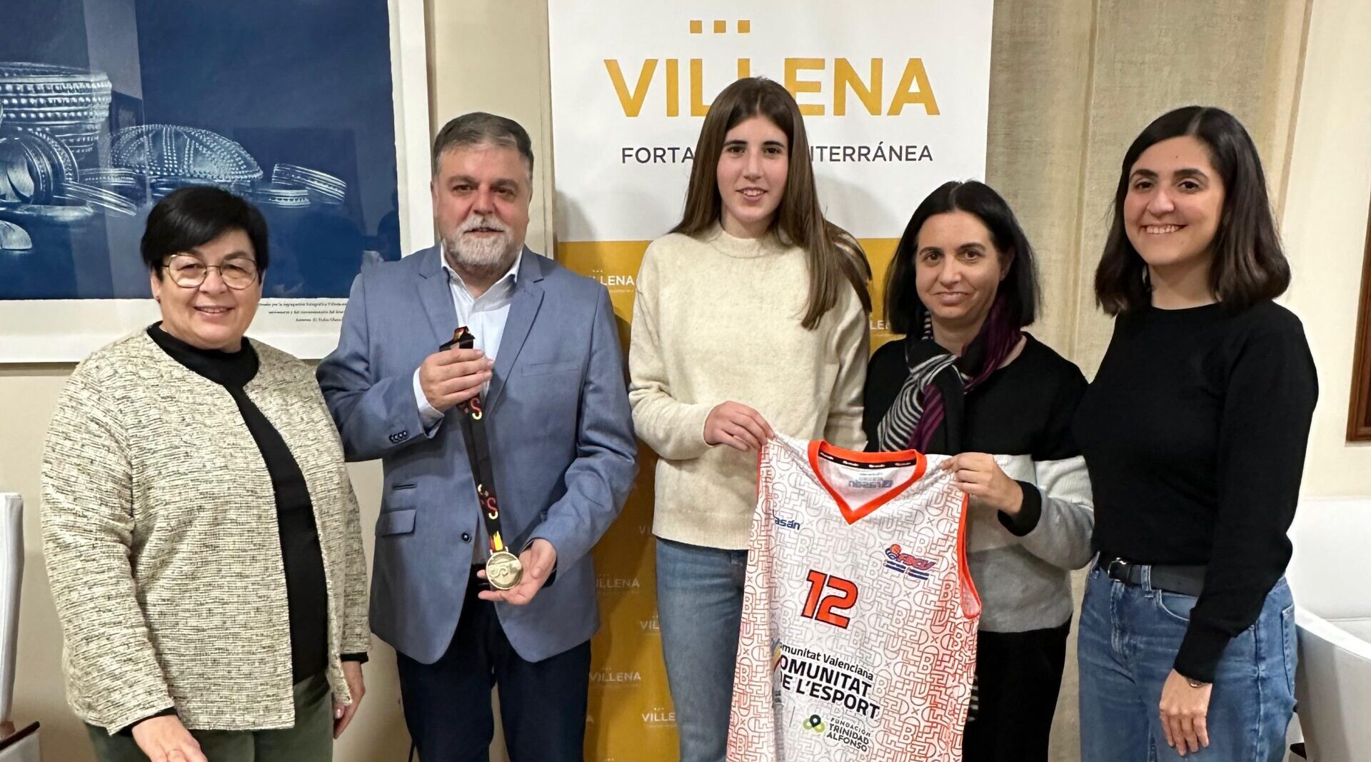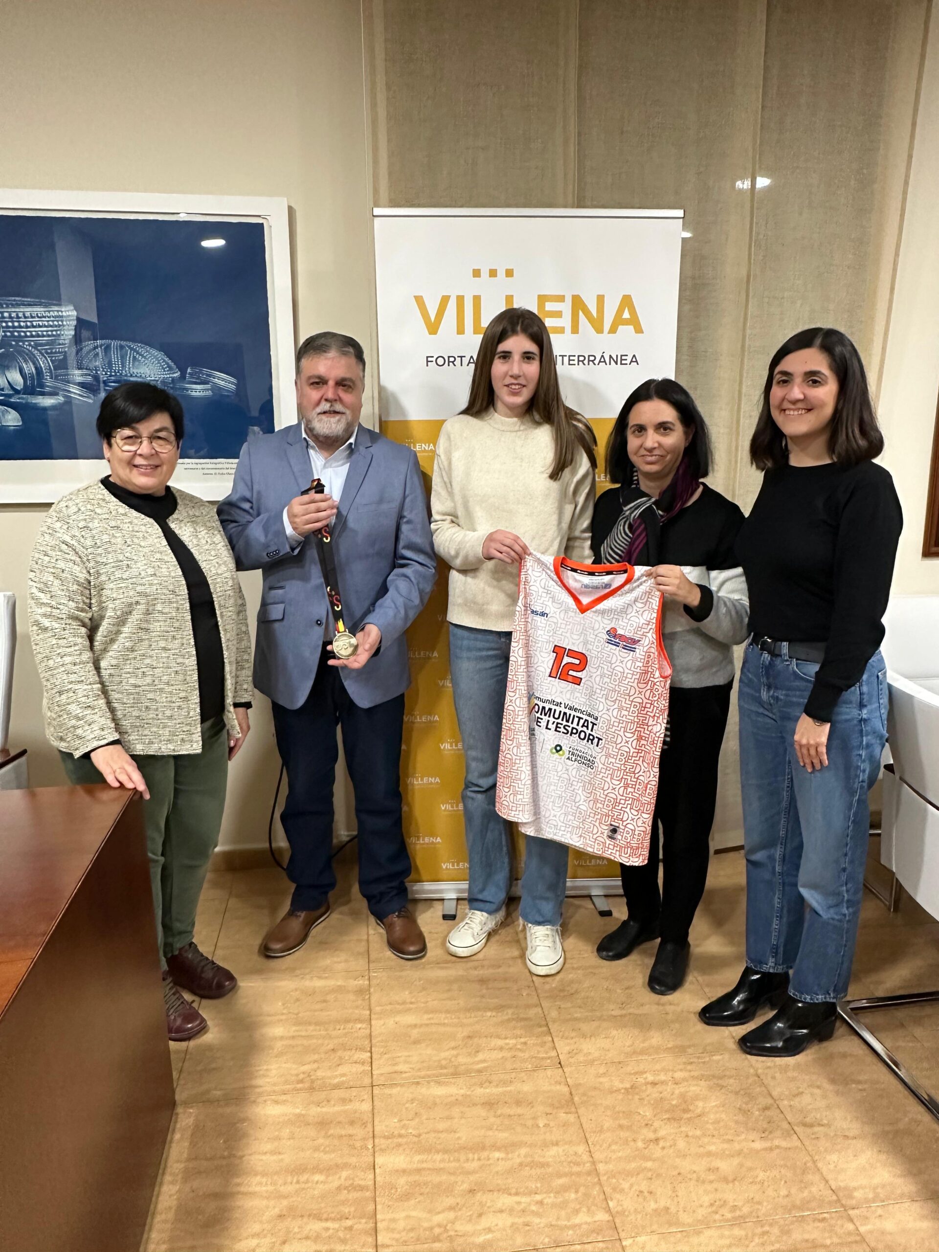 El equipo de Gobierno municipal ha recibido a la jugadora de la selección valenciana de baloncesto en categoría infantil, Elsa Martínez, campeona de España el pasado campeonato celebrado en Huelva. El alcalde de Villena, Fulgencio Cerdán; la edil de Deportes, Maite Gandía; la concejala de Turismo, Paula García; y la edil de Sanidad e Igualdad, Alba Laserna, formaron la representación municipal que recibió a la joven jugadora, acompañada de su familia.