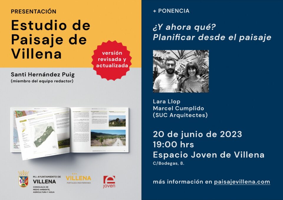 La charla informativa prevista a las 19.00 horas del 20 de junio en el Espacio Joven correrá a cargo de Santiago Hernández, miembro del equipo redactor, que continuará con la ponencia ‘¿Y ahora qué? Planificar desde el paisaje’, que ofrecerán Lara Llop y Marcel Cumplido, del despacho de arquitectura SUC Arquitectes.