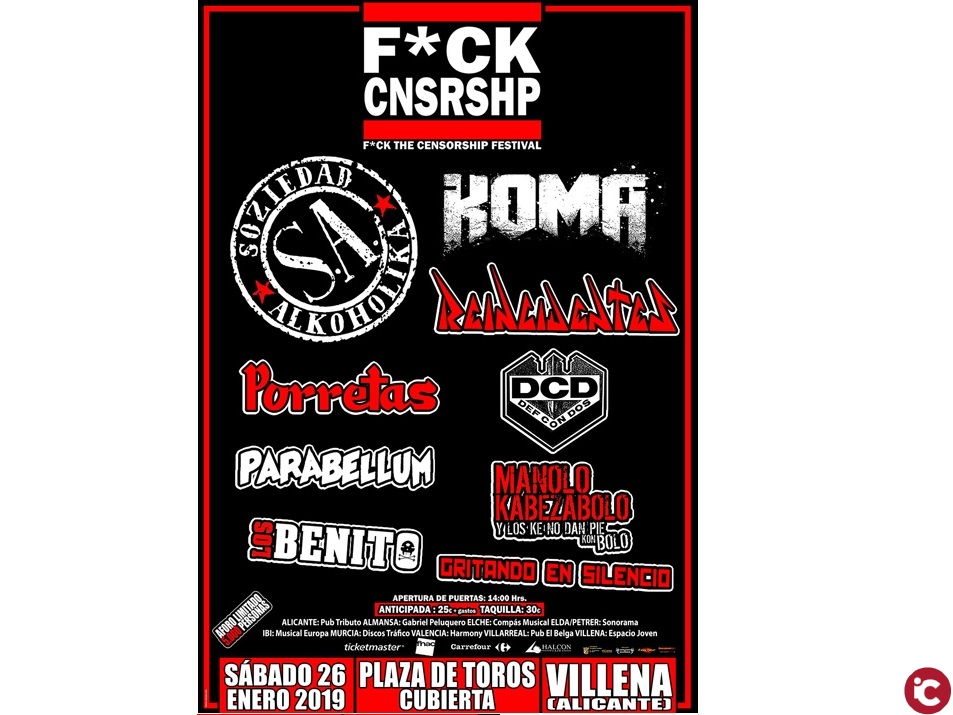 El cartel lo encabeza Soziedad Alkoholika, y lo completan Reincidentes, Koma, Def con Dos, Porretas, Parabellum, Los Benito, Manolo Kabezabolo, Gritando En Silencio.