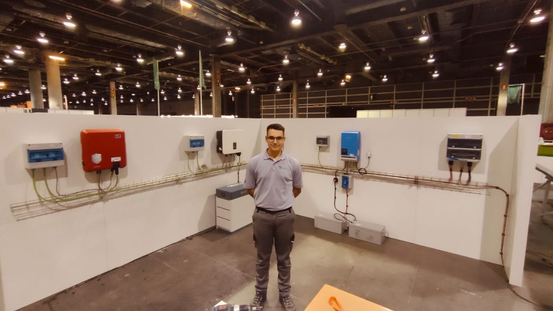 En Energías RenovablesAlejandro Ramos Lozano (tutorizado por Francisco Abellán) montó paneles solares, tres inversores fotovoltaicos y resolvió pruebas de realidad virtual para simular el mantenimiento de aerogeneradores.