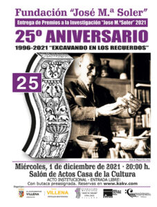 El próximo miércoles tiene lugar la gala de entrega de la 27 edición de los Premios de Investigación e Iniciación a la Investigación de la Fundación José María Soler día en el cual se conmemora el aniversario del descubrimiento del Tesoro de Villena.