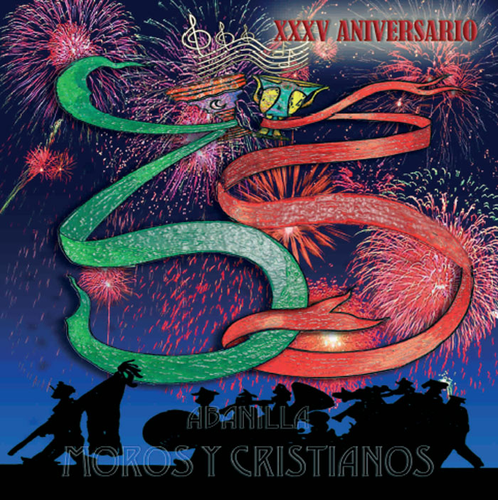 A las 20:30 horas presentación del CD y Conmemoración del XXXV Aniversario. De las 17 piezas que componen este CD, “Jessica”, “75 Aniversario Andaluces de Villena”, “Als Moros Vells”, “Mario Vargas”, “Juan Capel Rey Moro 97”, “Tudmir”, “José Luis Valero”, “Templarios de Caravaca”, “Xubuch”, “Churumbelerías”, “Caballeros de Navarra”, “Cavall de Foc”, “Vicente Marín”, “Cid”, “Troyica” e “Himno de la Santa Cruz”, 6 han sido seleccionadas para este acto. El orden será el siguiente: