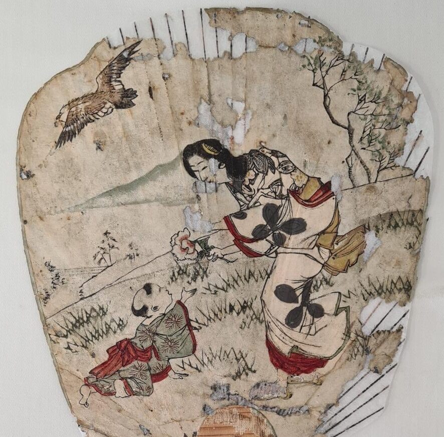 Se trata de un abanico uchiwa, compuesto por un mango y una pantalla fija no plegable. La pieza presenta en una de sus caras el texto “Cotillón del 93” junto al escudo y sello de la Sociedad Valenciana de Agricultura. Esta entidad representativa de la aristocracia valenciana del siglo XIX, fue resultado de la fusión del antiguo Casino de Valencia con el Casino de la Agricultura. Este abanico en cuestión pertenece a la fiesta del Cotillón de 1893, que se celebró en el pabellón de esta entidad en la Feria de Julio de la Alameda de Valencia. Estas noches de baile y entretenimiento fueron una de las principales atracciones de la feria, con una gran concurrencia de personajes de la alta sociedad valenciana.