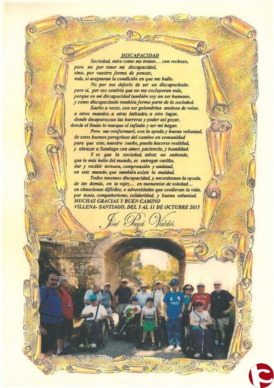 Al finalizar el acto, Jose Payá, miembro de la Asociación Amigos del Camino de Santiago de Villena nos leyó una poesía escrita por él relacionada con este tema.