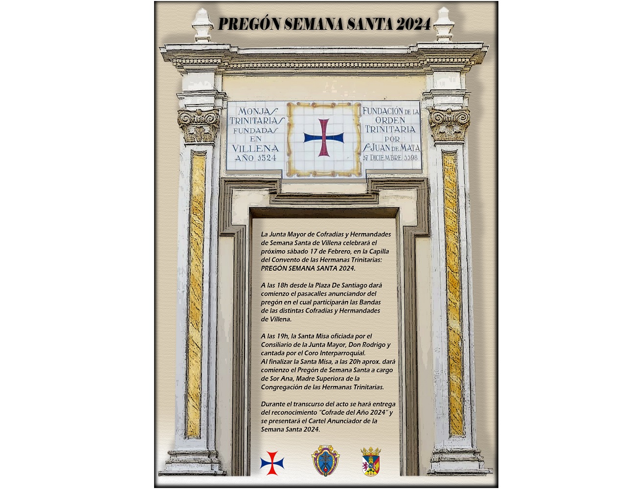 febrero, se llevará a cabo el Pregón de Semana Santa, en la Capilla del Convento de las Hermanas
