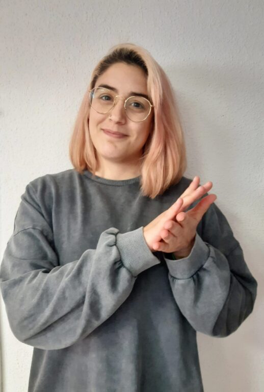 Ana Isabel Hernández Sánchez nacida en Villena y enamorada de su ciudad. Es una persona extrovertida y polifacética. A lo largo de su vida ha hecho teatro, baile, animaciones, malabares… Su entusiasmo por ayudar y mejorar la calidad de vida de las personas le llevó a estudiar logopedia en Madrid, lugar donde actualmente reside. Cuando algo le gusta es persistente y trabajadora hasta conseguir sus objetivos, así le pasó con la Lengua de Signos. La estudió en el centro de Idiomas Modernos de la Complutense, y cuando llegó al nivel C2 ya le dijeron que sabía todo lo que tenía que saber para ser bilingüe.