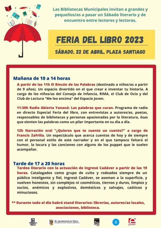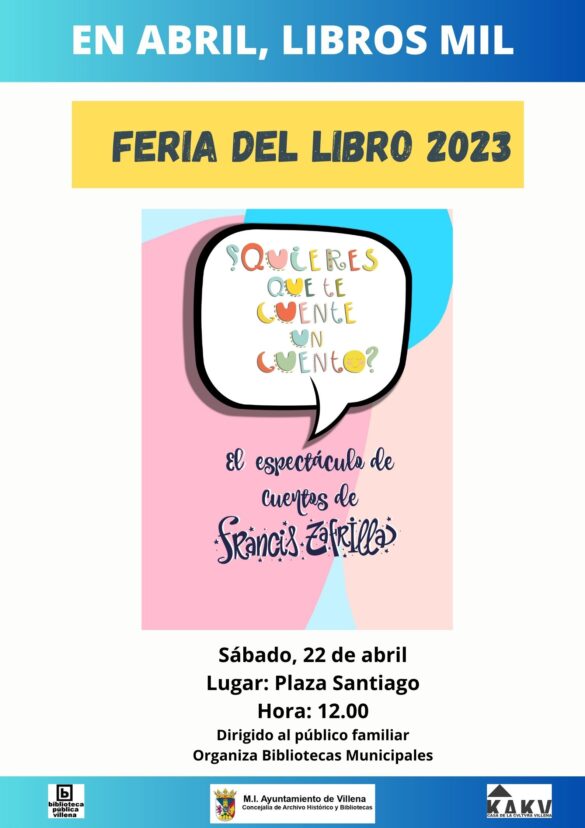 Villena, 18 de abril.- Villena celebrará el Día Internacional del Libro el próximo 23 de abril con la celebración del Feria del Libro y una serie de actividades que se extienden a lo largo de los próximos días de este mes de abril. La concejala de Bibliotecas, Eva García, ha señalado el “alto interés” de las diferentes actividades que comienzan hoy martes, 18 de abril, que están pensado para diferentes públicos e intereses.