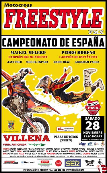 Maikel Melero (Campeón del mundo de FMX), junto a Pedro Moreno (bicampeón de España), encabezan este gran cartel en el que tendrán que demostrar todo su potencial junto a sus amigos y rivales, Abraham Parra (tercer clasificado provisional), Javi Polo, Miguel Espada y Rayco Díaz.
