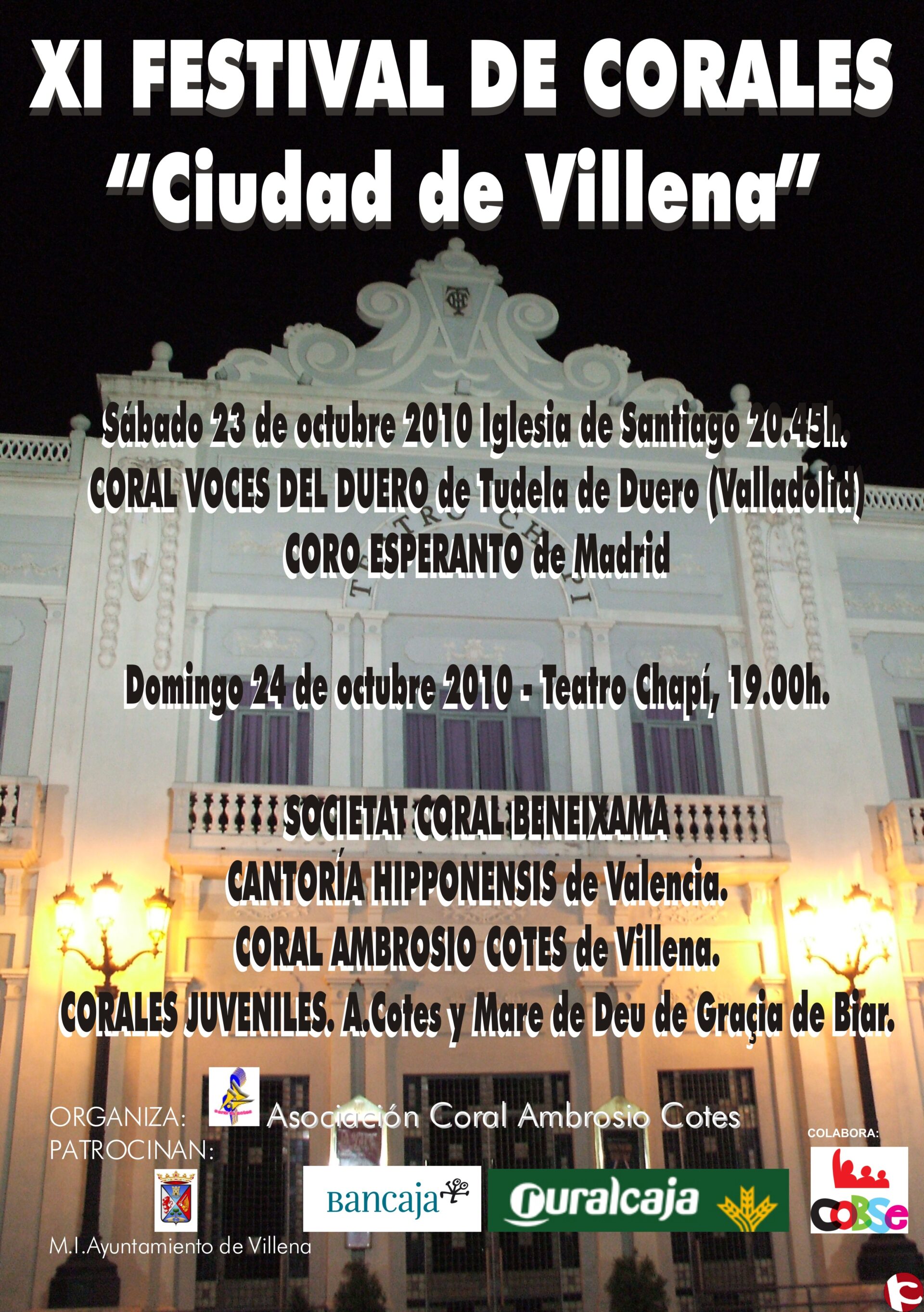 El próximo sábado día 23 y el domingo 24 vamos a llevar a cabo nuestro XI FESTIVAL DE CORALES CIUDAD DE VILLENA.