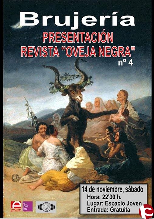 El Espacio Joven acogió el sábado a partir de las 22:30 horas la presentación del cuarto número de la revista independiente Oveja Negra que se edita desde la Factoría de Ideas a través de la concejalía de Juventud. Esta revista cultural y desenfadada trae, en esta ocasión, la brujería, el esoterismo y las ciencias ocultas para disfrute de su cada vez más extensivo público.