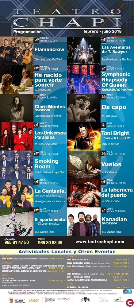 La información más detallada de todos los espectáculos puede consultarse en la web del teatro: www.teatrochapi.com