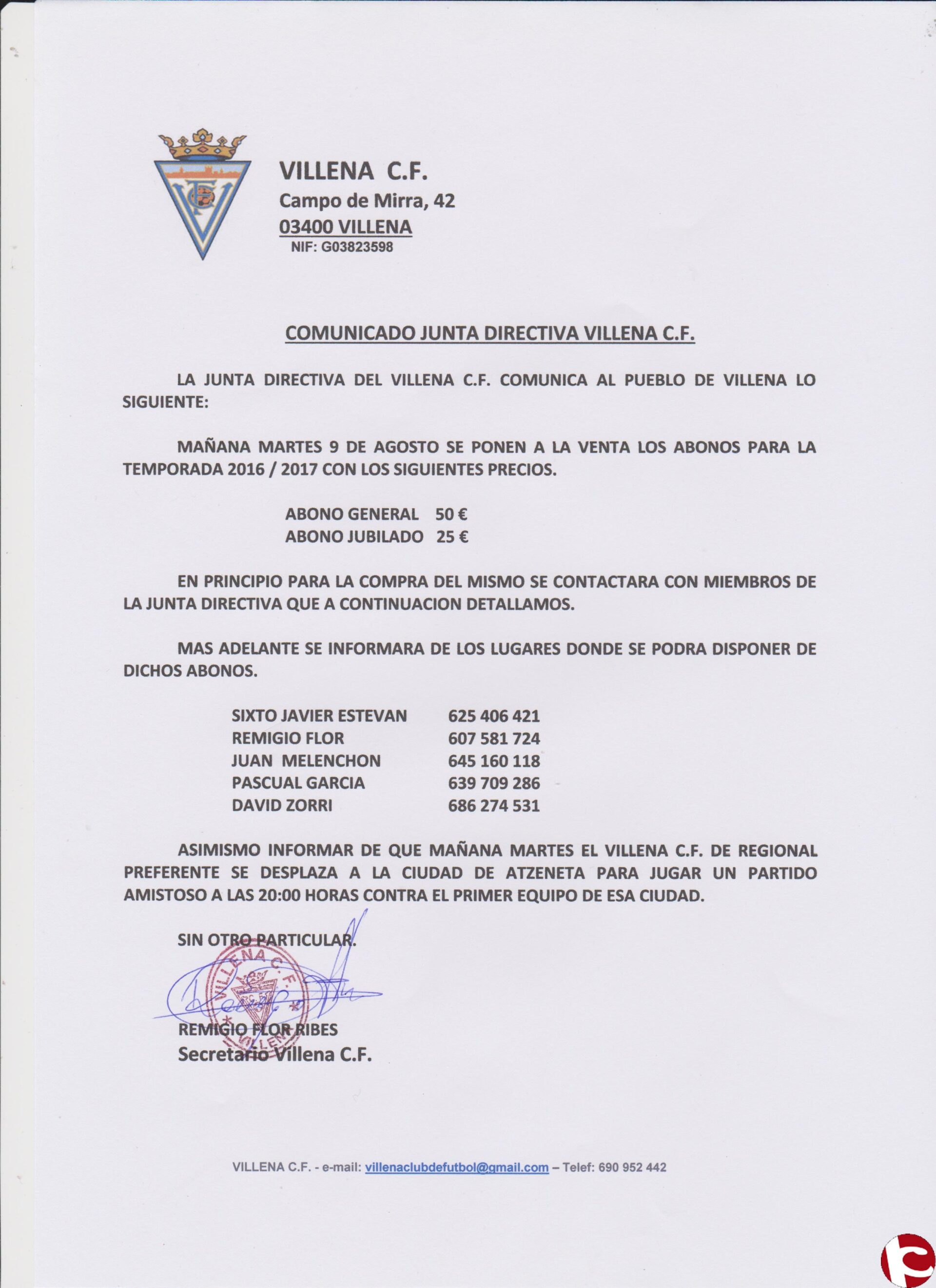 Aficionado: El Villena CF pone a la venta los abonos para Esta temporada 16/17, a partir de hoy, día 9 de agosto.