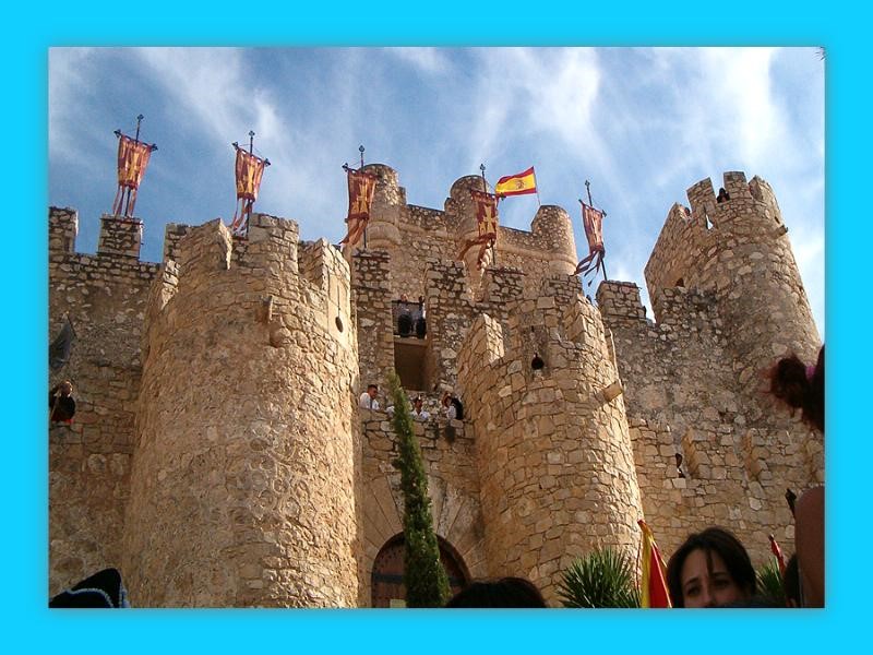 «El primer día guarnece dicho castillo una comparsa de labradores unida a otra vestida a la romana. El segundo día atacan los moros la fortaleza, la asaltan y se posicionan en ella, y colocan en sus almenas una estatua representando a Mahoma. Y el tercer día vuelven los cristianos a atacar el castillo, se apoderan de él y le pegan fuego a la estatua, cuya cabeza está llena de pólvora y estalla, saltanto los cascos a bastante distancia. En los tres días, anteriores a los ataques hay embajadas, que se comunican en voz alta y en ademán de representación entre los del castillo y los sitiadores».