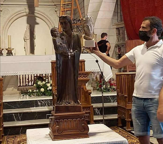 Cabe recordar que el escultor local, hizo con toda la ilusión del mundo por la carga emocional que suponía el trabajo como buen villenero que era, se puso manos a la obra, contando solamente con una leve fotografía de perfil para rostro y manos. Estudió esculturas románicas y cómo sería la concepción de la obra. Trabajó sin cesar en una imagen que todos los ciudadanos de su pueblo llevaban en el corazón, terminándola, incluso, antes de la fecha prevista.