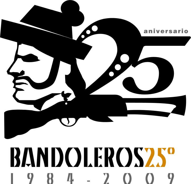 El logotipo del 25 aniversario ha sido diseñado por Miguel Flor. Herradura de caballo, arcabuz, patillas y bigote… son símbolos que tratan de componer la esencia del significado que implica ser bandolero.