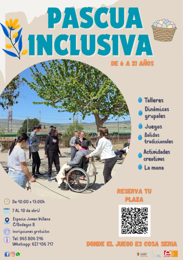 En este sentido, se ha organizado el programa Pascua Inclusiva, destinado a menores de entre 6 y 21 años con discapacidad y que articula una serie de actividades adaptadas a las necesidades grupales e individuales de los menores inscritos. Pascua Inclusiva se desarrollará entre el 7 y el 10 de abril, en horario de mañana desde las 10.00 hasta las 13.00 horas para un cupo máximo de 20 participantes.