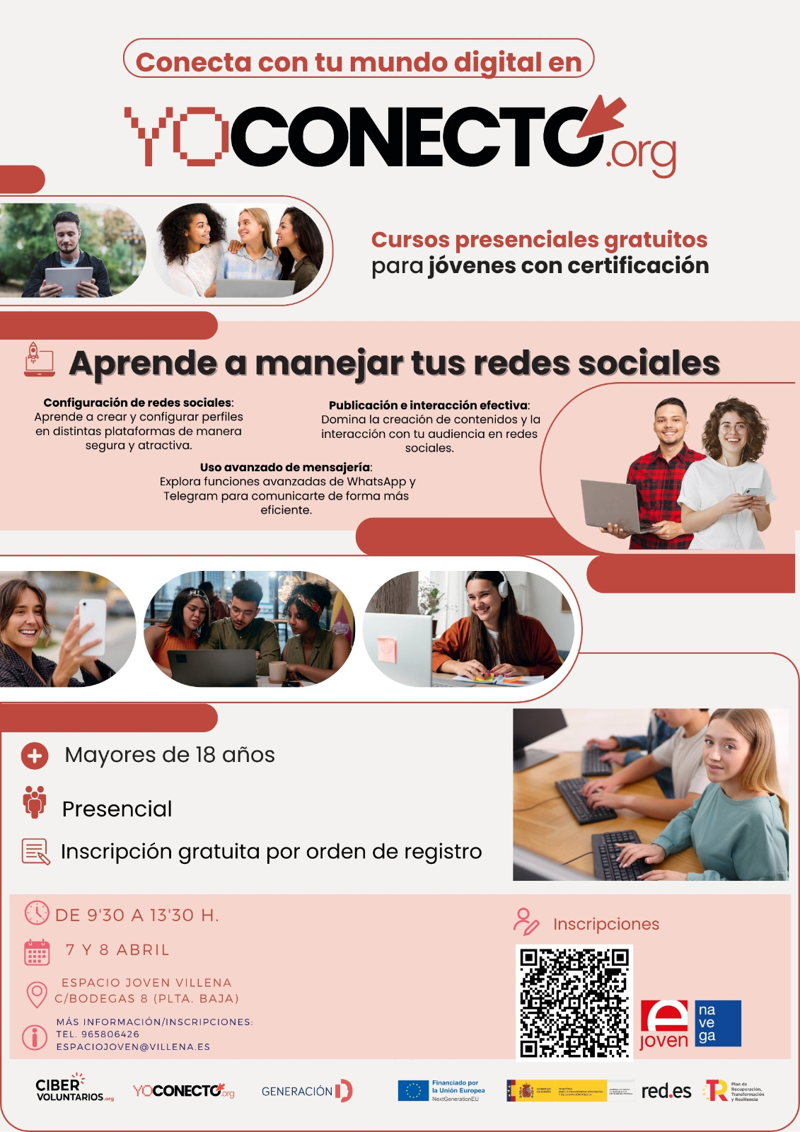 Más información en el teléfono 965806426, el correo espaciojoven@villena.es o a través del whatsapp 627 43 67 17
