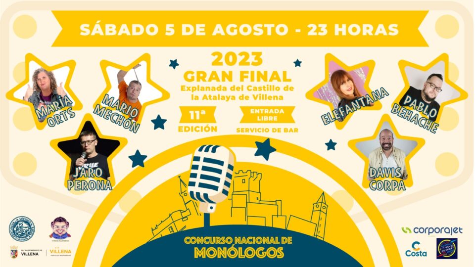 Vuelve el humor y las risas a la explanada del Castillo con la final de esta 11ª edición del Concurso Nacional de Monólogos El Rabal-Villena.
