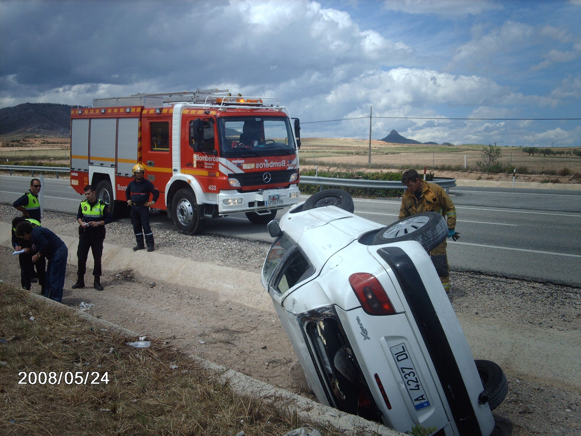 15:15, Se producía un accidente de trafico en la A-31 a la altura de la Encina, un vehiculo ocupado por una conductora perdía el control de la marcha y se salía