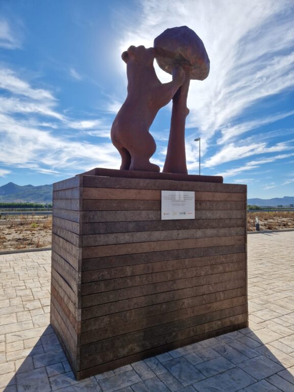 Finaliza la instalación de la réplica del oso y el madroño en la estación AVE de Villena