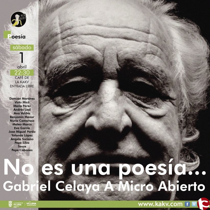 El próximo sábado, en la KAKV de Villena Gabriel Celaya a Micro Abierto en Café de la KAKV.
