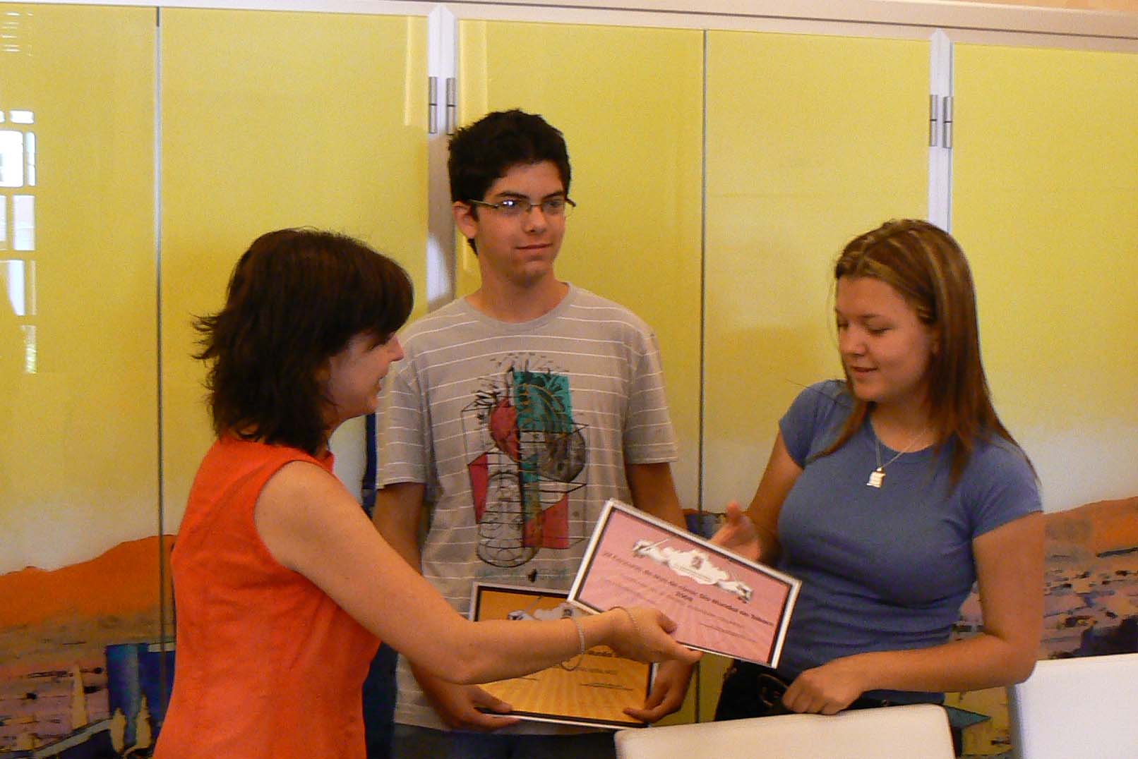 La alcaldesa de Villena, Celia Lledó junto al edil de Bienestar Social, Juan Carlos Pedrosa ha hecho entrega esta mañana en el Ayuntamiento de los premios concedidos a los ganadores de la 4ª edición del concurso de carteles y la 7ª edición de tiras de cómics que se celebran con motivo del día mundial sin tabaco, que tuvo lugar el pasado 31 de mayo y en el que han participado diferentes centros escolares de la ciudad.