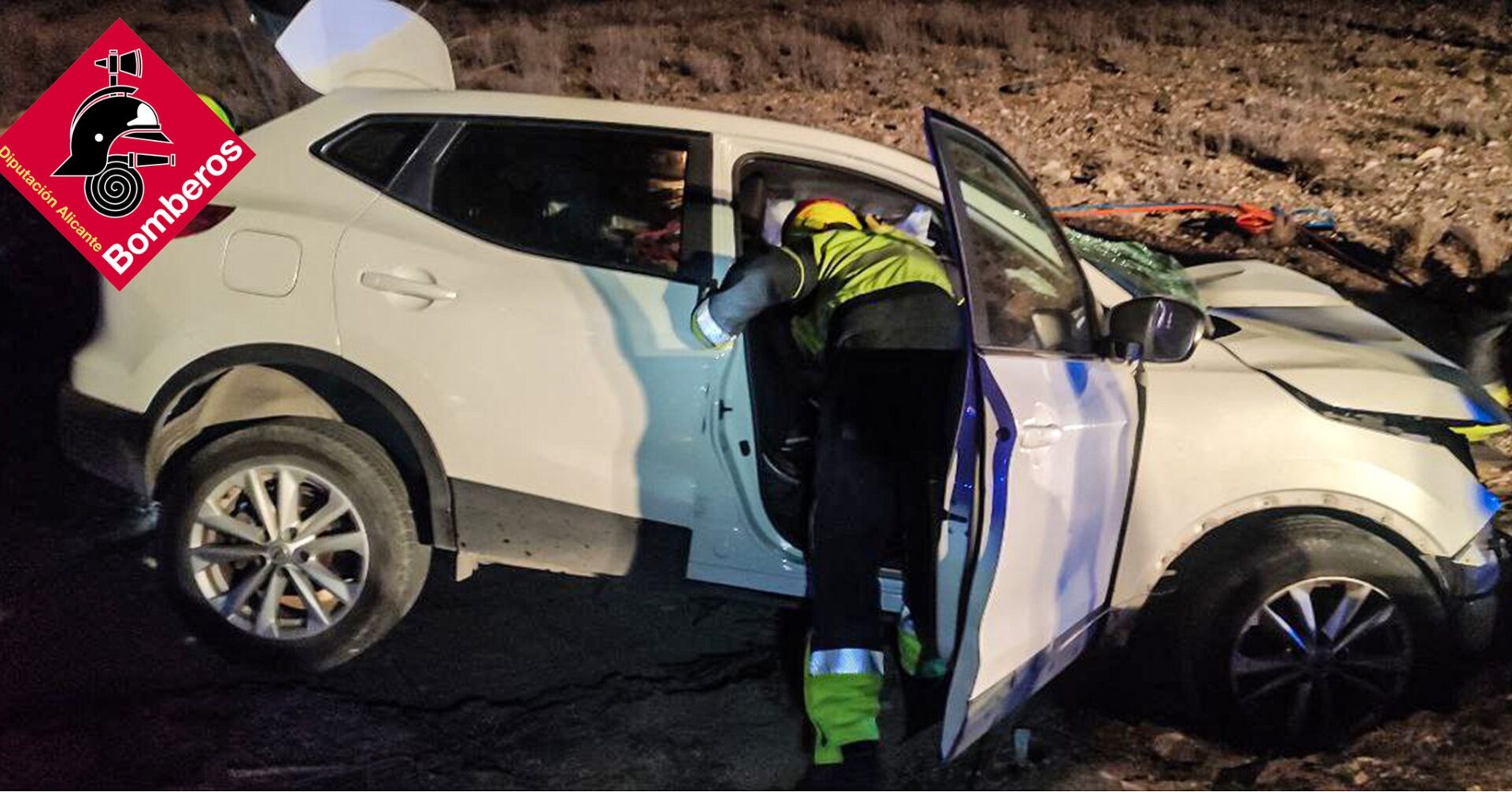 Grave accidente de tráfico anoche en la CV-81 a la altura de Villena (las Virtudes), con dos coches implicados en la que uno de ellos se precipitó (unos 100 metros) por un barranco tras la colisión.
