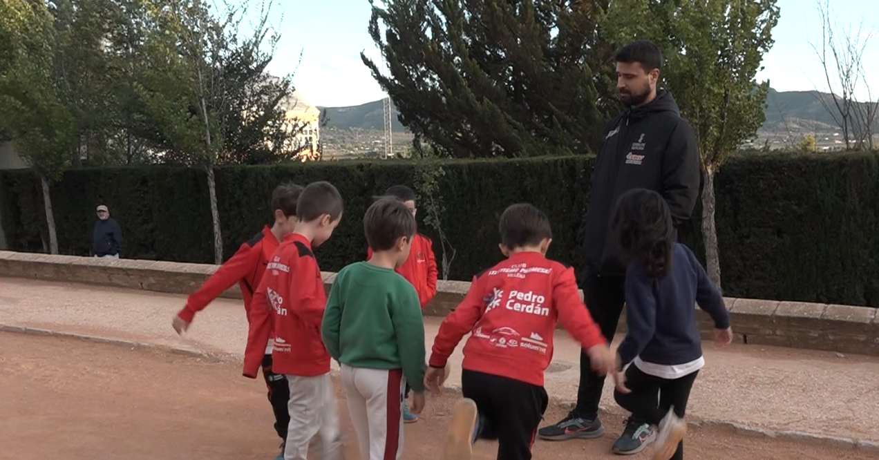 Luego también estuvimos con los entrenadores de la escuela de duatlón que nos comentaron cómo se ejercitan en el parking, eso sí cerrado, del polideportivo villenense.
