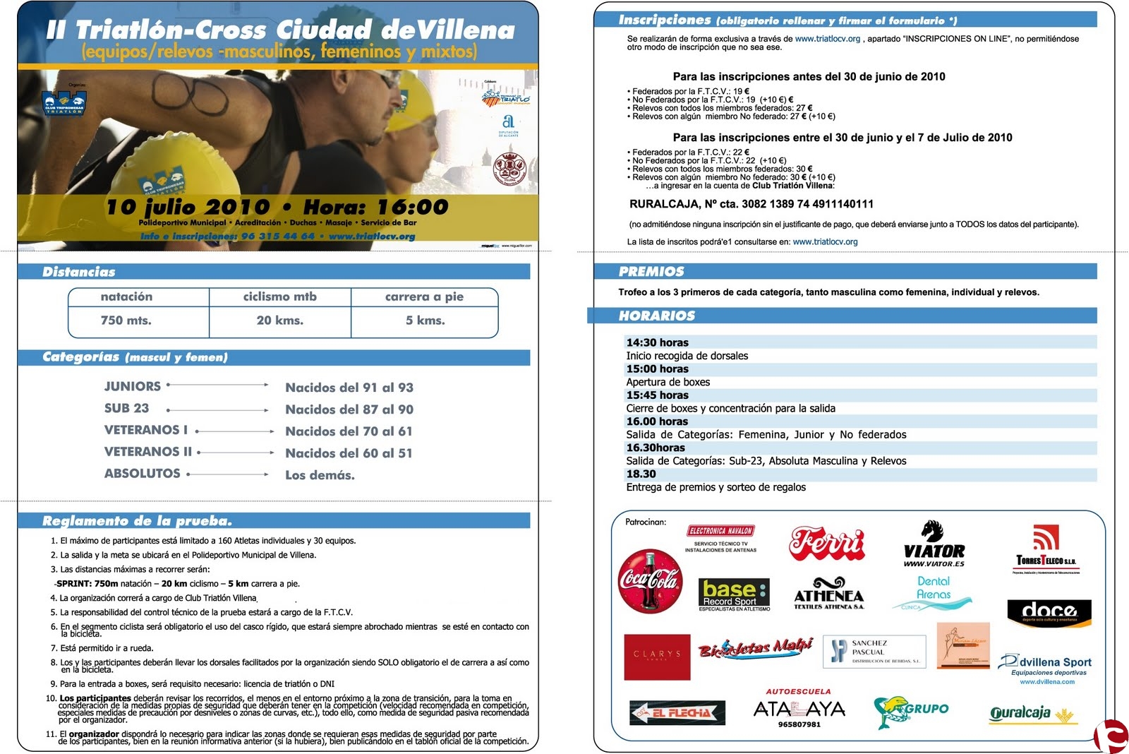 II TRIATLÓN CIUDAD DE VILLENA. Adjuntamos el cartel donde se ofrece toda la información de esta nueva edición.