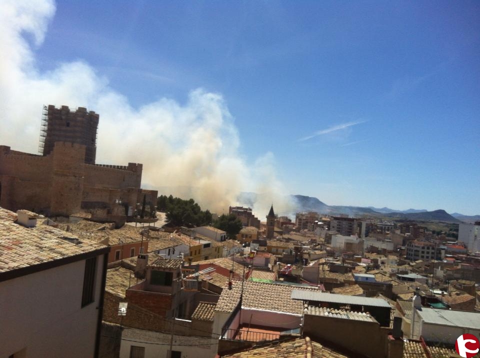Intenso incendio en los Altos de la Condomina. Se detectó sobre las cuatro de la tarde. El fuego, se ha originado justo al lado de la fábrica de calzados Eli, avivándose rápidamente por toda la zona de las vías del ferrocarril. Policía Local, Guardia Civil y Bomberos, trabajaron al unisono para controlarlo en menos de una hora. La zona cuanta con muchas matas y hierbas secas.