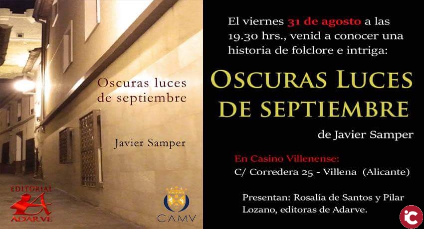 Con su novela ambientada en Villena «Oscuras luces de septiembre» da un salto en su trabajo literario para adentrarse en este gran género, de corte más adulto, a la que aporta un toque fresco y ágil lejos de espesuras innecesarias.