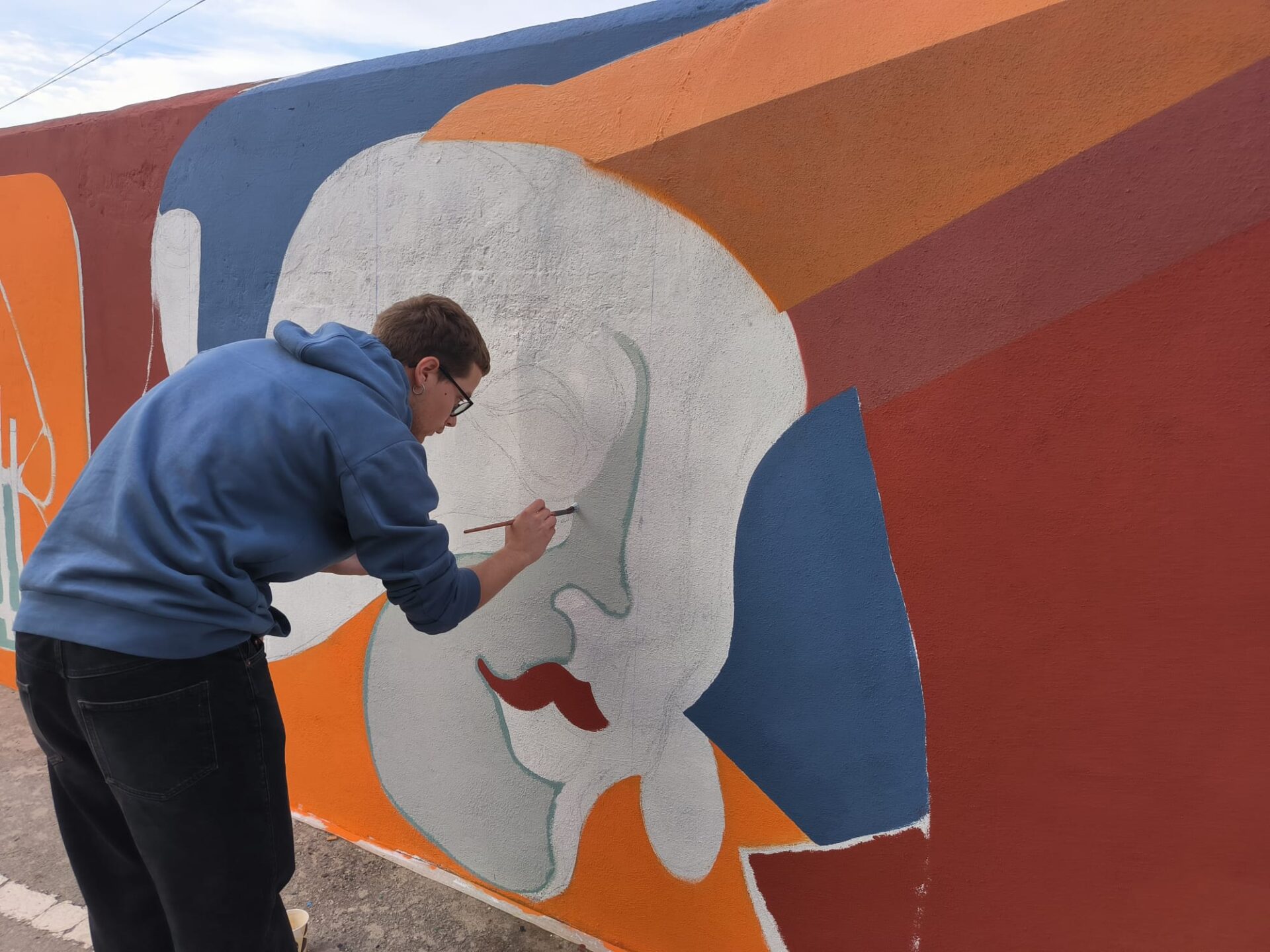 Villena, 31 de marzo.- El Ayuntamiento de Villena ha contado con la colaboración de dos jóvenes artistas, Antonio y Pablo, para mejorar el entorno urbano en la calle Juan Gris, aprovechando el muro de separación de la calle con la playa de vías de Adif a lo largo de los 400 metros de longitud de esta vía. Esta iniciativa ha sido propuesta por la Asociación de Vecinos del barrio, que reclamaba la recuperación de este muro que separa la calle de la playa de vías de la Estación de Renfe y su mejora estética, petición que se ve cumplida con esta actuación.